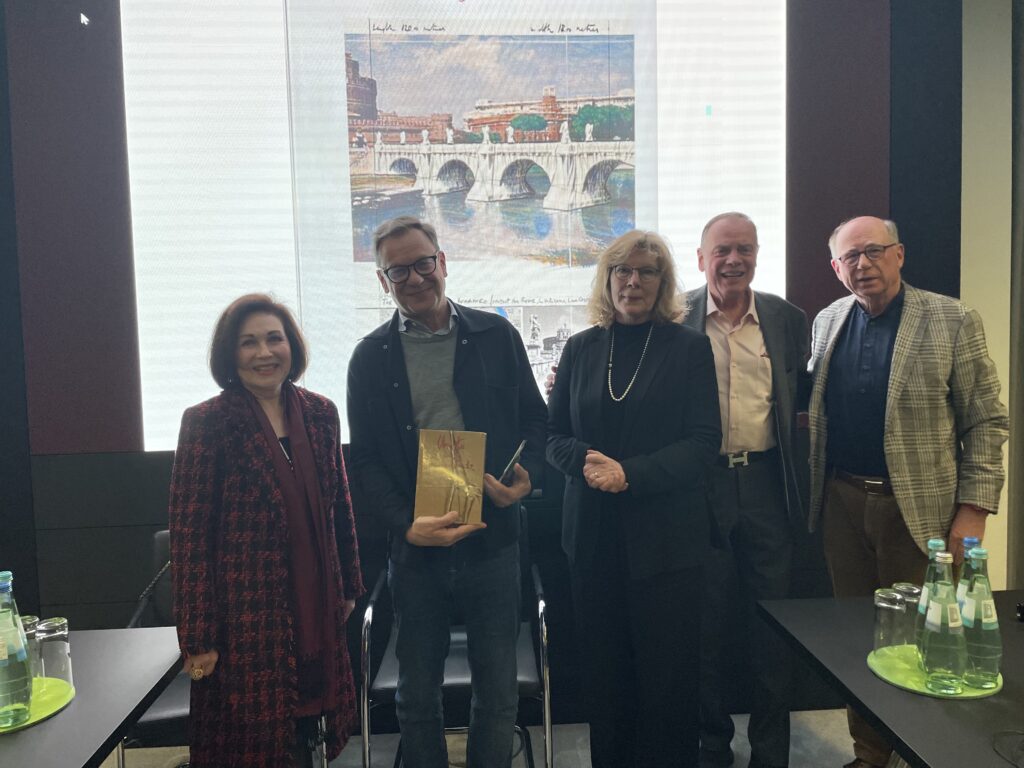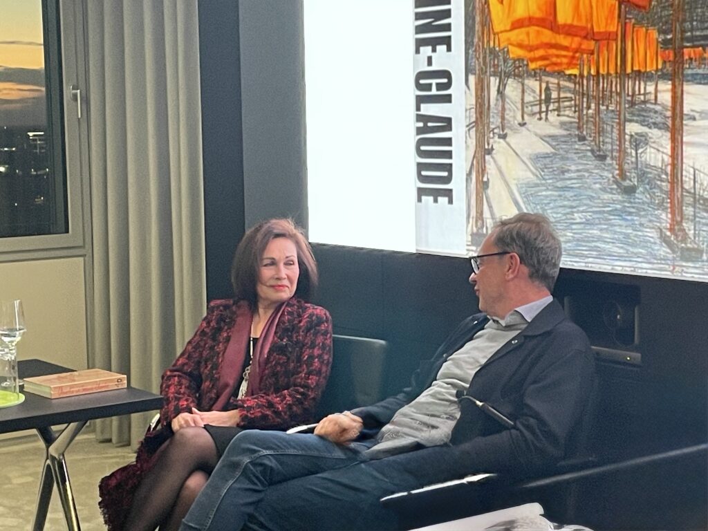Ergänzt wurde das Gespräch durch Heidrun Wagner-Fils, Inhaberin von Fils Fine Arts, deren Verlagshaus die Lithographien von Christo und Jeanne-Claude gedruckt hat und die ebenfalls interessante Einblicke in das Werk des Künstlerpaares gab.