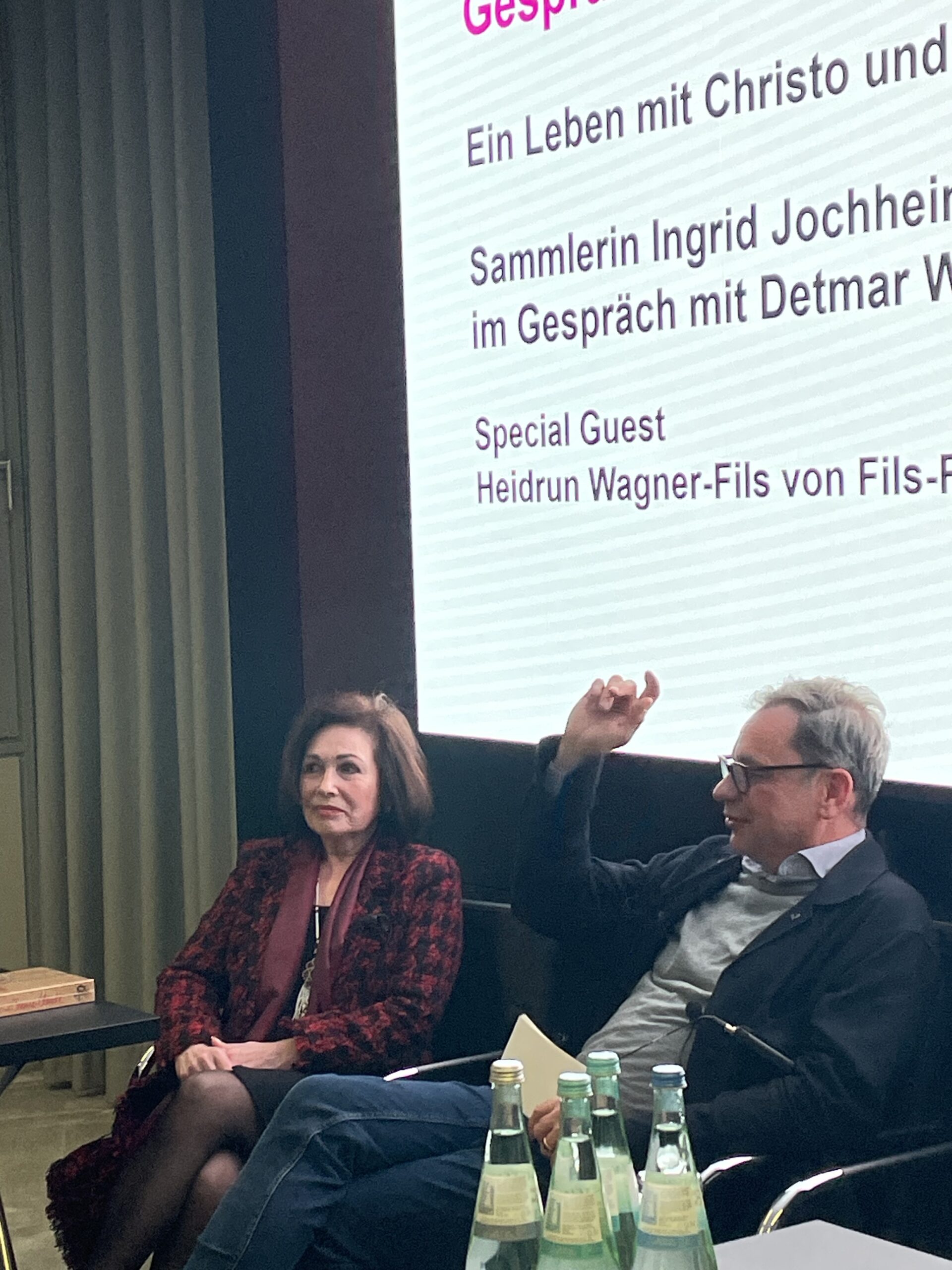 Ergänzt wurde das Gespräch durch Heidrun Wagner-Fils, Inhaberin von Fils Fine Arts, deren Verlagshaus die Lithographien von Christo und Jeanne-Claude gedruckt hat und die ebenfalls interessante Einblicke in das Werk des Künstlerpaares gab.